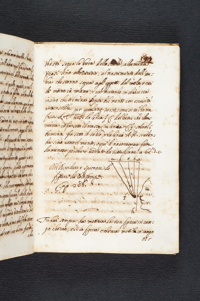 Opinione di Leonardo da Vinci. Modo di dipingere prospettive, ombre, lontananze, altezze, bassezze da vicino, da lontano et altro, et precetti di pittura