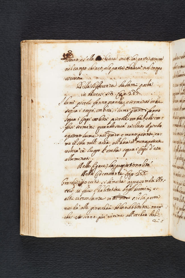 Opinione di Leonardo da Vinci. Modo di dipingere prospettive, ombre, lontananze, altezze, bassezze da vicino, da lontano et altro, et precetti di pittura